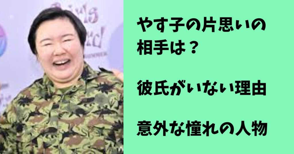 やす子さんの恋愛事情が話題になっています。 これまで彼氏がいなかったやす子さんですが、実は密かに片思いしている人がいるという噂が浮上しました。 一体、やす子さんが片思いしている人はどんな人なのでしょうか? また、今まで彼氏がいなかった理由も... -
